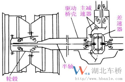 載重汽車的后橋為驅(qū)動橋,其主要作用是: