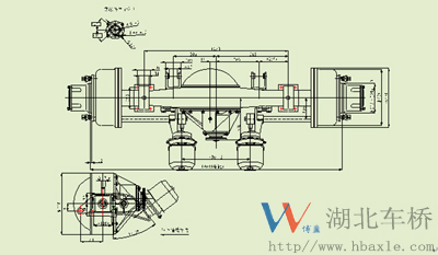 401K75-010-5.286主減速器總成是我廠根據(jù)客車廠家的要求,設(shè)計(jì)突緣端面至橋殼中心線距離為280mm(見如下安裝尺寸圖)。主從動(dòng)錐齒輪是專門針對(duì)客車要求噪音低、壽命長等特點(diǎn)而開發(fā)的,其傳遞扭矩16500N.M,裝配成總成后噪音在84dB以下,壽命可達(dá)70萬次以上,深受用戶的好評(píng)。