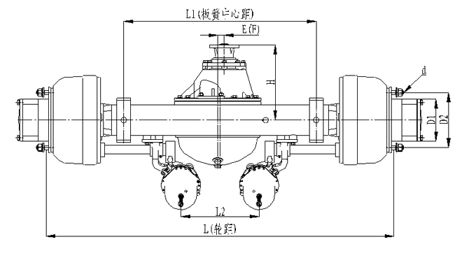 1.橋殼加強型設(shè)計,承載能力強;2. 采用專用客車制動鼓(帶散熱孔及散熱筋)和摩擦片,具有散熱效果好,使用壽命長的優(yōu)點;3. 可配裝空氣懸架系統(tǒng);4.可配裝緩速器;5.車輪輪輞定位方式可采用球面定位或止口定位;6.輪距、板簧距可靈活調(diào)整;