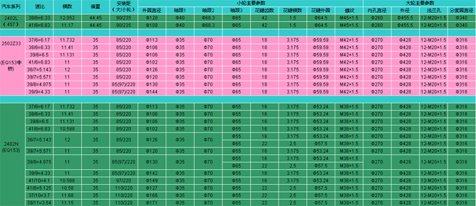 | 汽車系列 | 速比 |